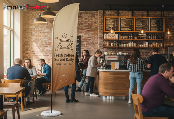 Printed Today uses weather-resistant poly-fabric and eco-solvent inks to produce 5m custom concave flags with sharp graphics and long-lasting colour. Easy to set up with a pole system and stable water base, they’re as practical as they are impactful.