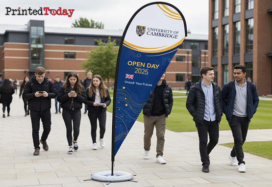 At Printed Today, we print 5m tear drop flags on premium poly-fabric using eco-solvent inks for long-lasting, fade-resistant colour. Their tall structure and flowing shape maximise exposure, while the single-sided print ensures a sleek, lightweight profile.