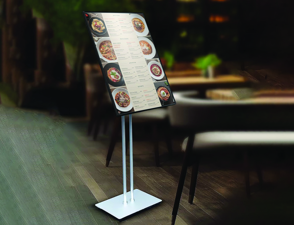 - A1 Menu Illuminated Edge-Lit Display Stand – easy insert and remove system for posters
