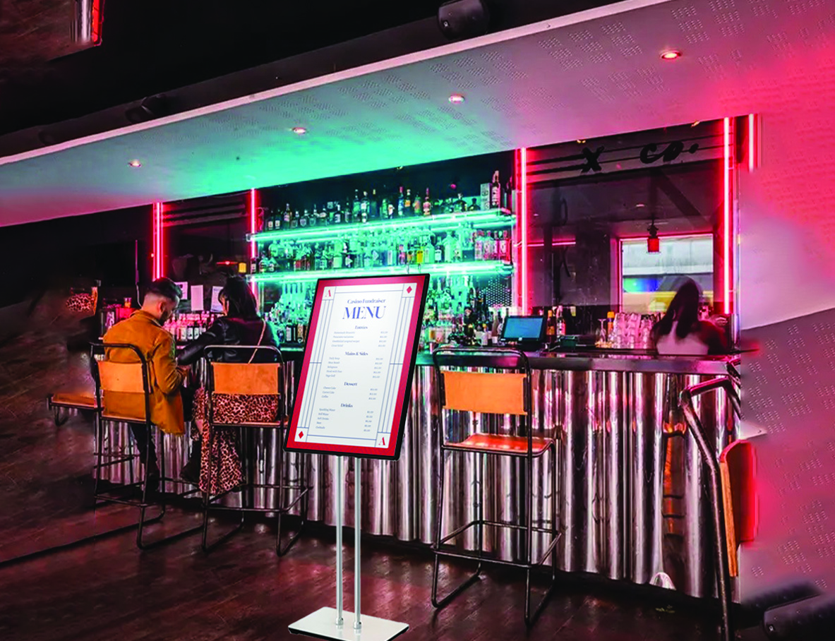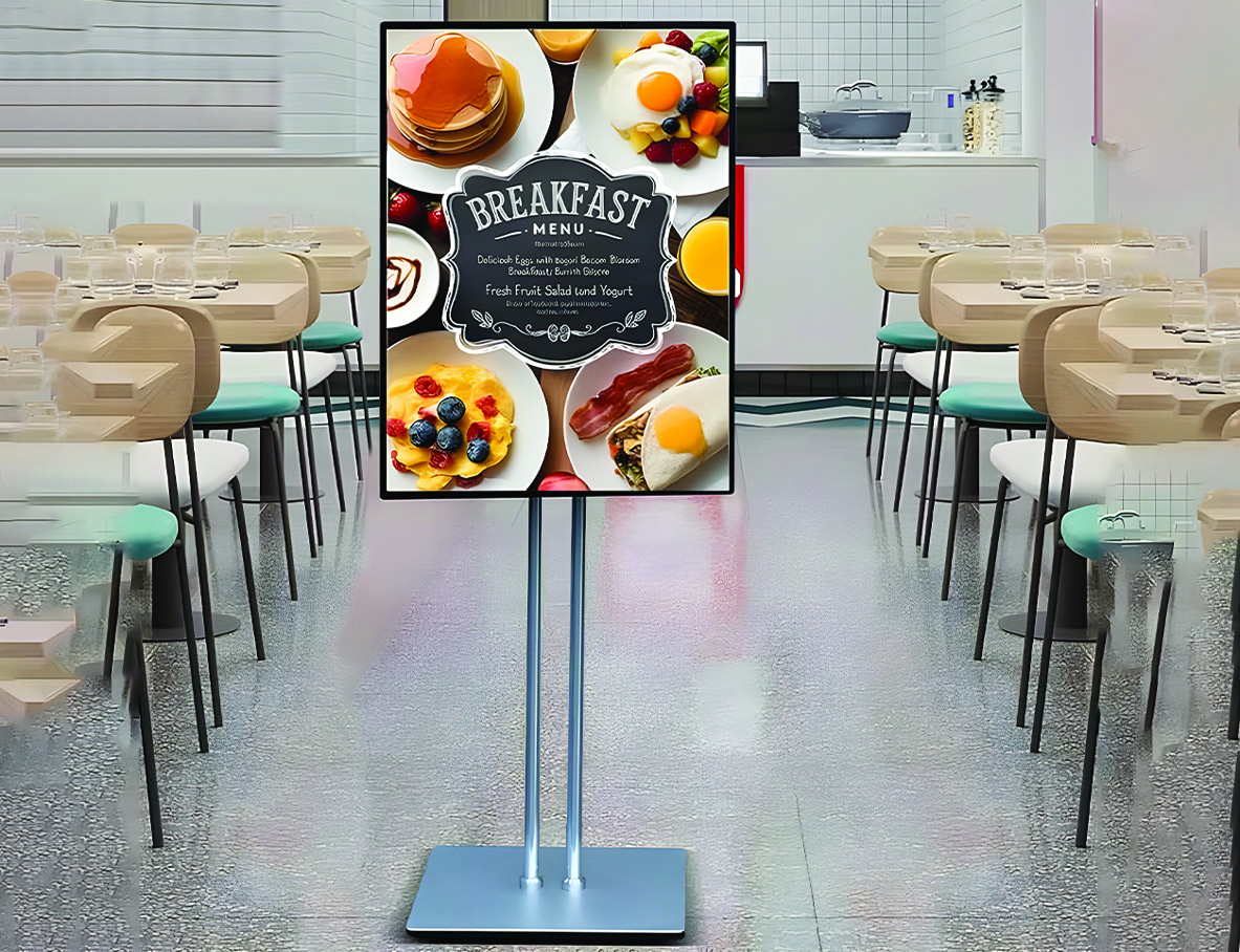 - Free-Standing A1 LED Menu Display – durable metal stand with clean lines
