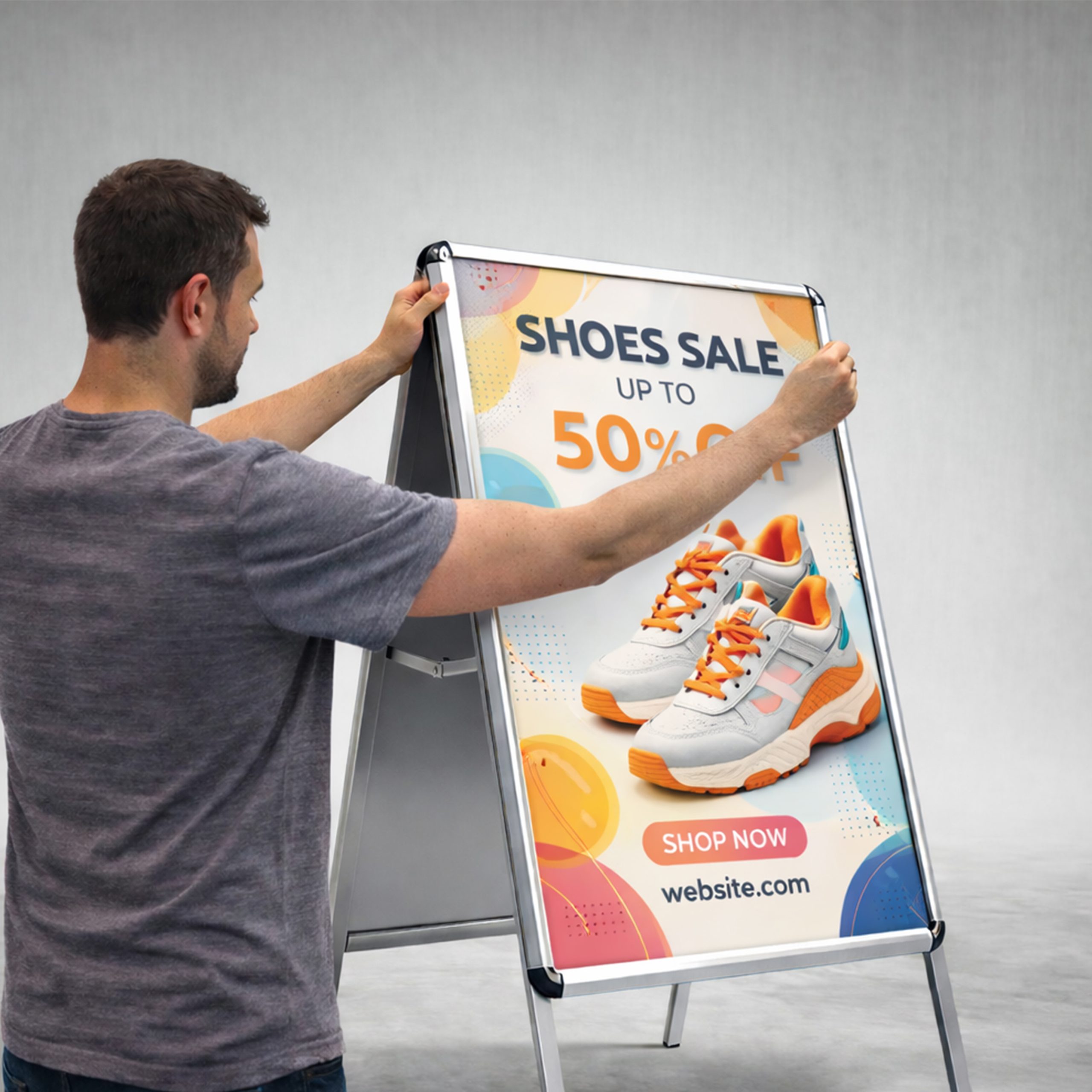 Designed specifically to fit standard A1 pavement A frame sign boards, these replacement posters provide a precise fit and a professional finish. Whether you are promoting seasonal sales, new menus, or limited-time offers, replacing the graphic allows you to maintain visibility without unnecessary expense.