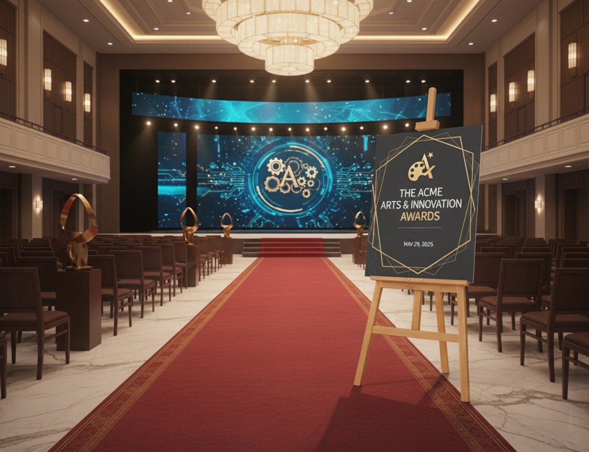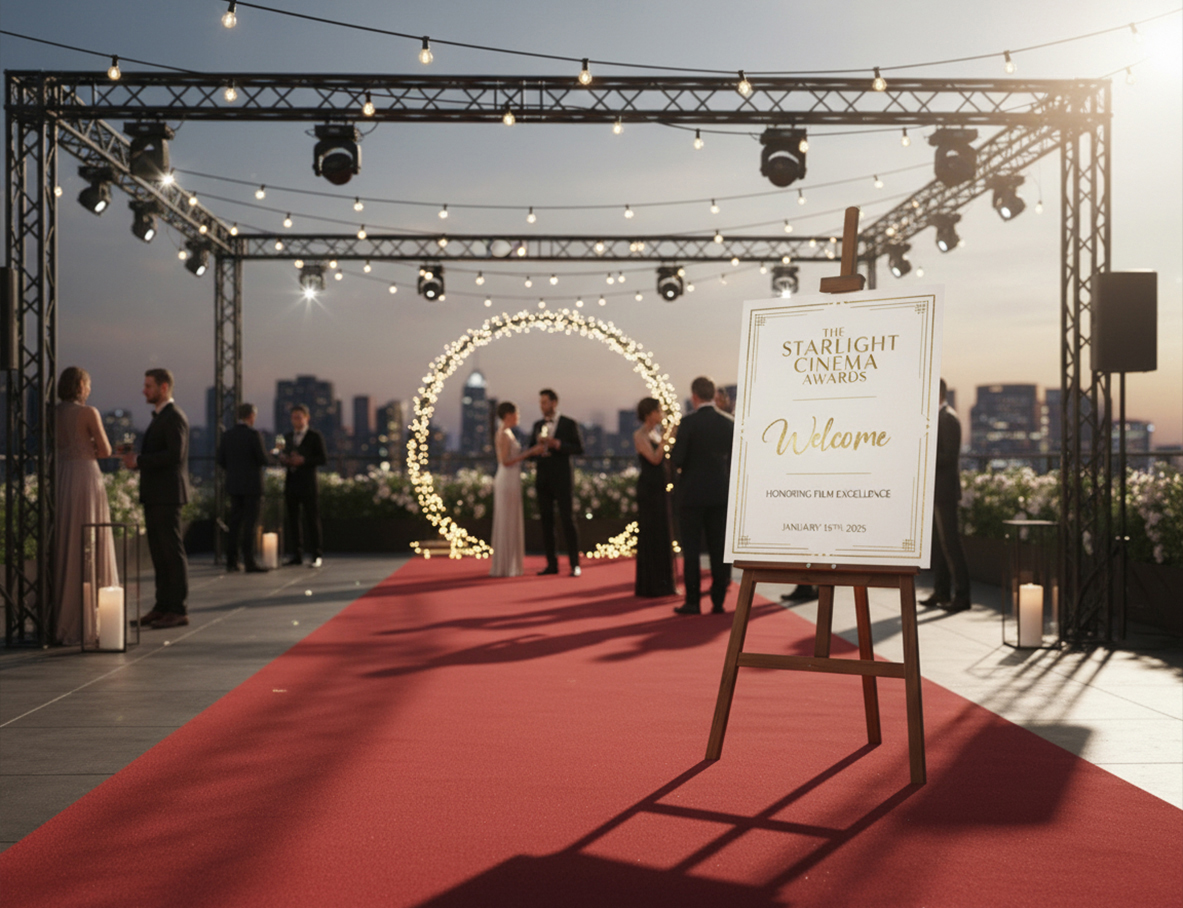 - Welcome your attendees with an award night welcome board with wooden easel, setting the tone for an unforgettable evening.