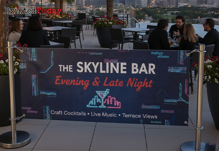 Elevate your terrace frontage with Bar Terrace Café Barrier Banners from Printed Today. We produce Bar Terrace cafe banners in 510 gsm PVC vinyl, 350 gsm PVC mesh and premium 195 gsm poly-fabric. Choose printed Bar Terrace cafe barrier banners for crisp, high-impact branding, or branded Bar Terrace cafe barrier banners that align with menus, cocktail boards and window graphics. Our Bar Terrace cafe barrier system banners are supplied as graphics only and finished with pole pockets or eyelets so they fit neatly to your existing rails.