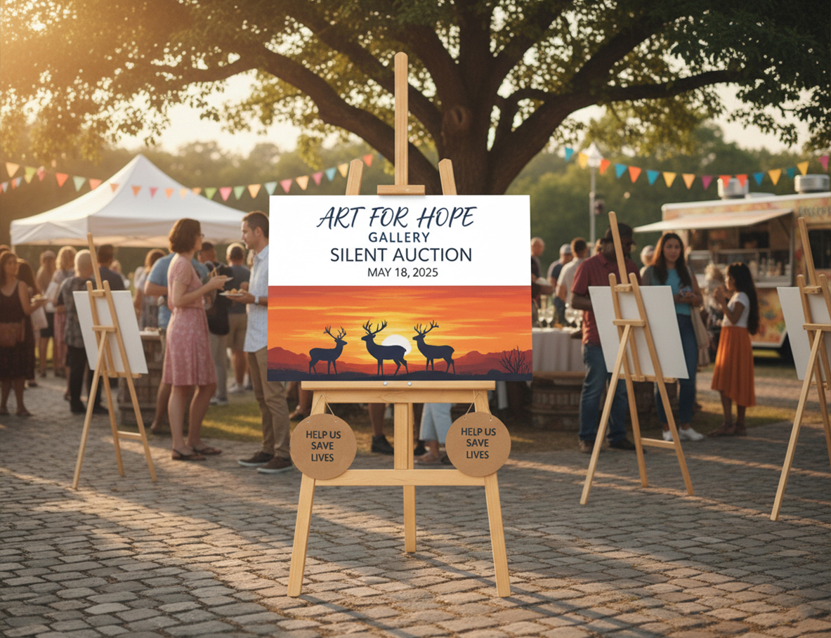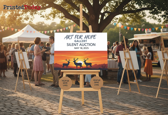 - Printed graphics display easel for charity event – Present promotional graphics that capture attention at charity auctions.