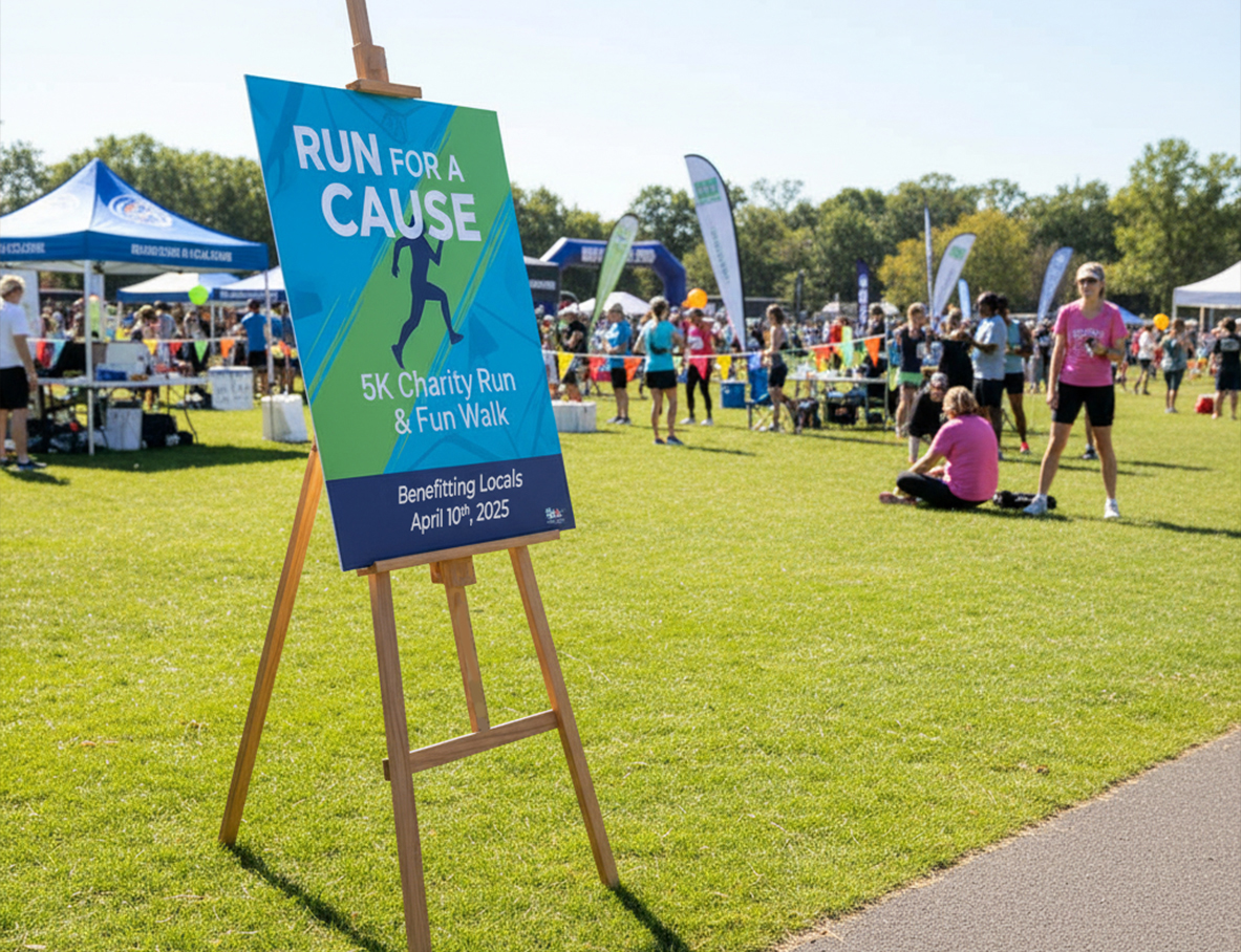 - Community fundraiser easel with printed sign – Support local community fundraisers with clear, attractive signage.