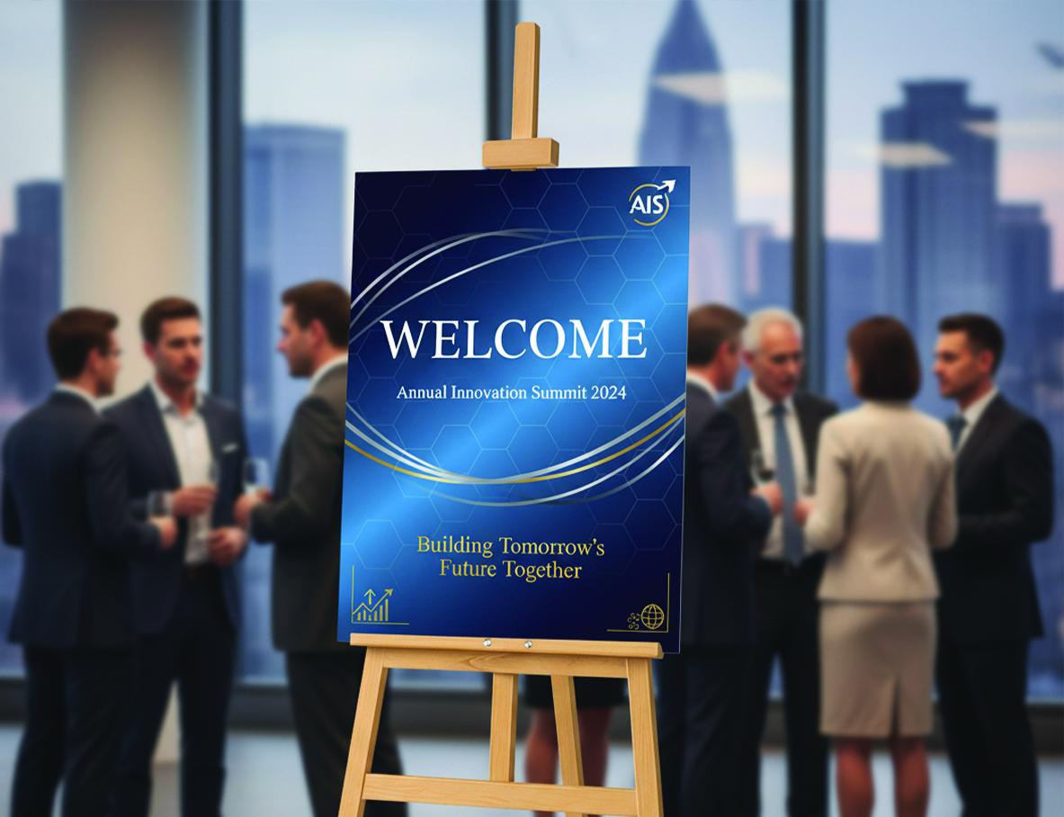 - Corporate event signage stand with printed board: Facilitates smooth navigation at large-scale corporate events, directing guests effortlessly.