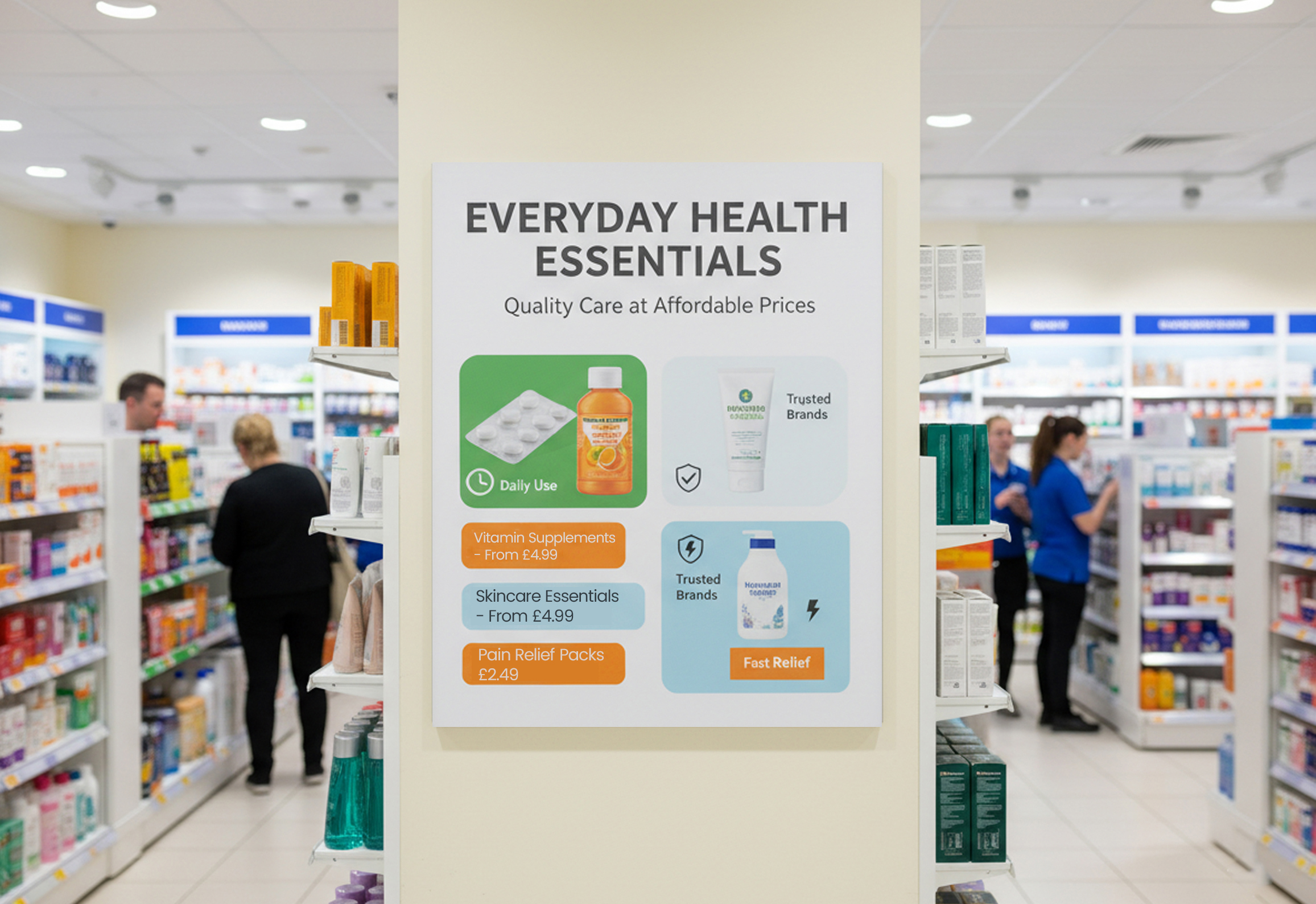- A4 (210 × 297 mm) – versatile all-purpose size ideal for shelf-edge displays, small window promotions, department signage, till-point messaging and flexible promotional applications throughout retail spaces.
