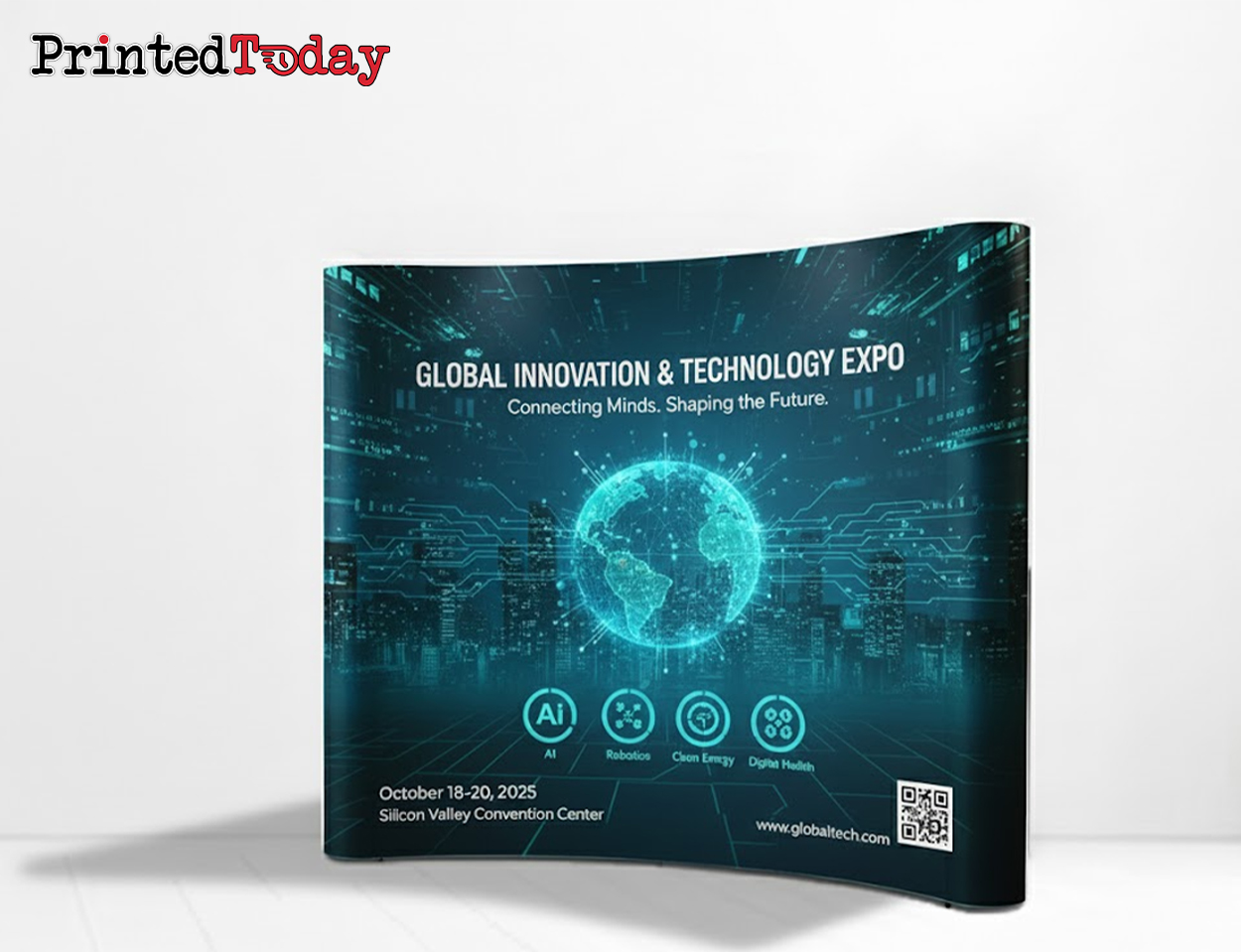 The curvature interacts favourably with exhibition hall lighting conditions—overhead lighting, spotlight positioning, and ambient illumination all create subtle highlight and shadow variations across curved surfaces that would remain absent on perfectly flat alternatives. This lighting interaction creates visual movement and depth perception attracting attention whilst maintaining complete graphic readability essential for effective brand communication and marketing messaging delivery.