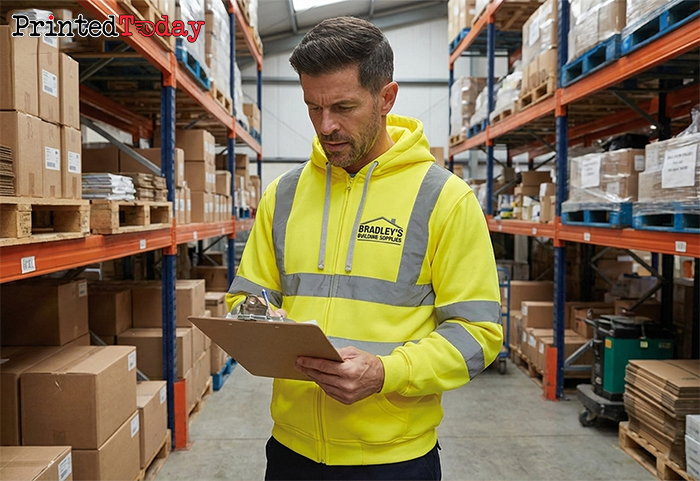 Choose from same or next day delivery options for your custom hi vis hoodie.