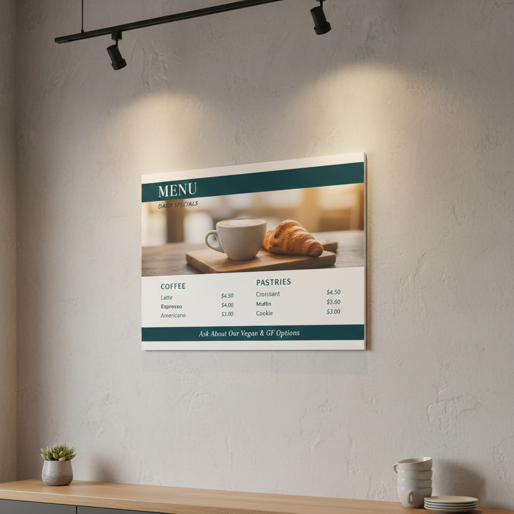 - Restaurant Menu Boards – prominently display daily specials and prices, aiding in quick decision-making for patrons.