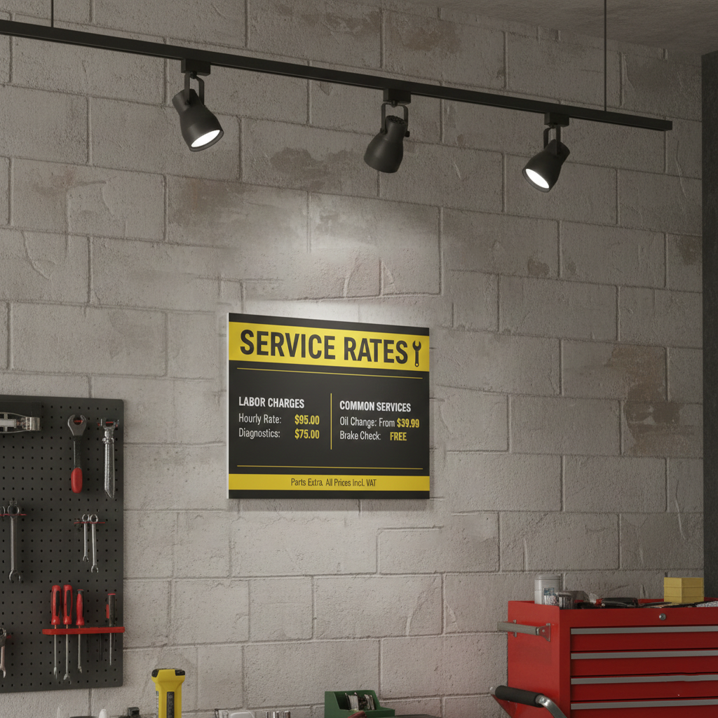 - Salon & Spa Price Lists – wall-mounted boards detailing services and pricing, ensuring clients clearly understand offerings.