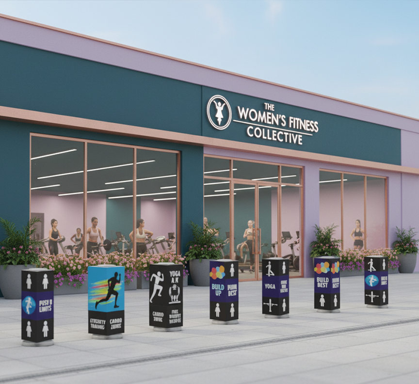 Our gym advertising bollard covers provide durable, eye-catching solutions for fitness centre bollard covers, health club bollard covers, and sports facility bollard covers. From custom gym bollard covers to outdoor gym bollard covers, we deliver signage that elevates safety and branding. Order today to transform your space with our expertly printed solutions.