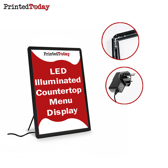 - A4 Illuminated Tabletop Menu Display with bright LED backlight