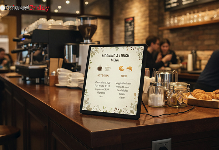 - A4 Backlit Table Menu Sign – easy to update with printed inserts