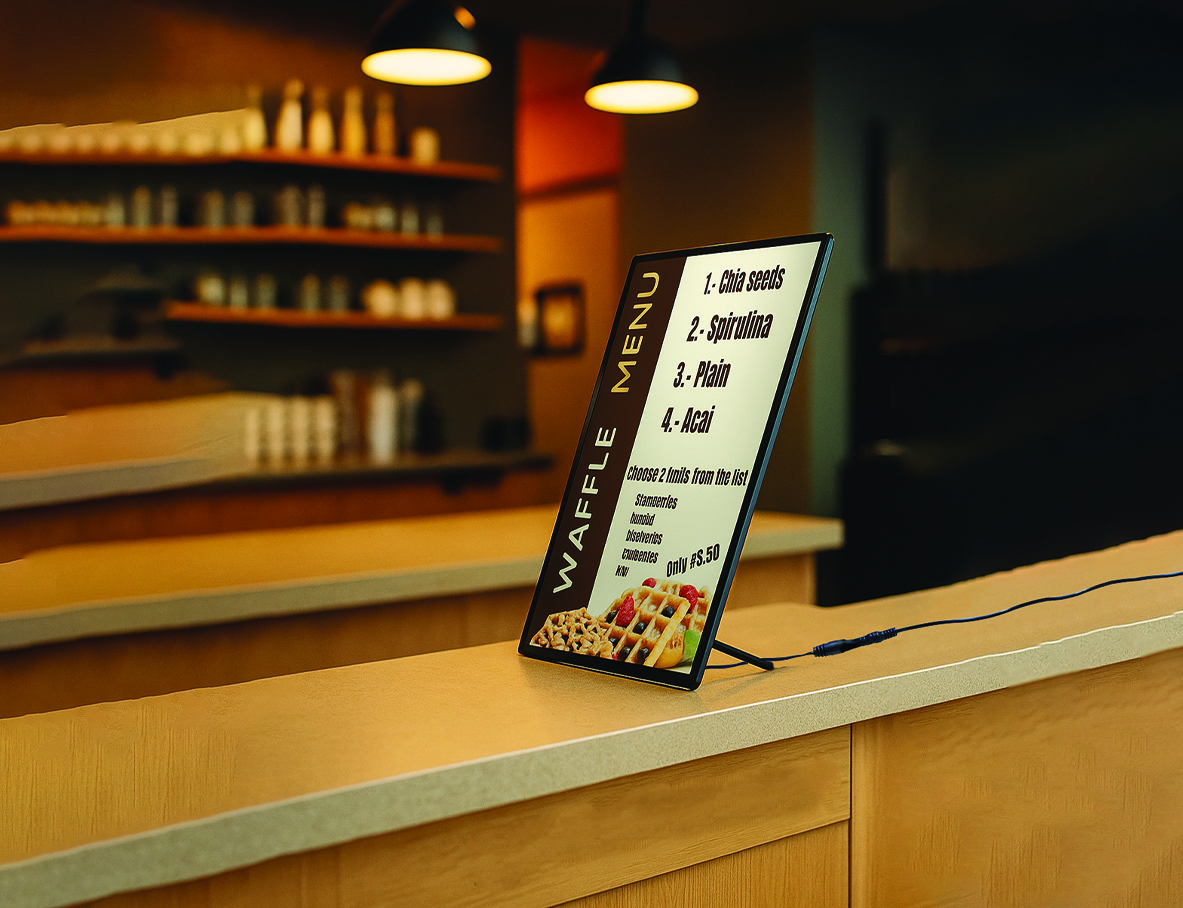 - LED A4 Table Display for Restaurants, cafés, hotels & retail counters