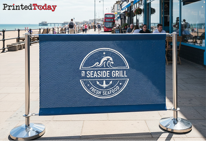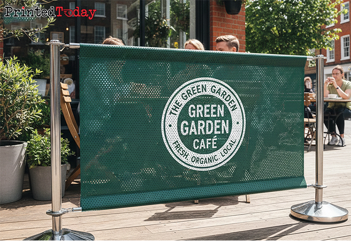 Keep outdoor areas comfortable and visible with Mesh Café Barrier Banners from Printed Today. Our 350 gsm PVC mesh reduces wind load while delivering crisp colour, making it ideal for exposed pavements, forecourts and seafront promenades. Choose printed mesh cafe barrier banners for queue control and zoning, or branded mesh cafe barriers to match menus and window graphics. Supplied as graphics only and finished to fit your existing rails.