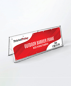 Streamline crowd control and elevate your visual marketing with our compact Outdoor Barrier Frame, complete with a customizable banner. This smaller 1.5M x 0.7M frame is perfect for tight spaces or smaller venues, providing an effective solution for guiding foot traffic while showcasing your brand. The included banner is manufactured from top-grade, weather-resistant materials, ensuring that it withstands the elements and maintains its visual appeal over time. This frame is an ideal choice for cafes, pop-up events, or any setting where space is at a premium but visibility is desired. Simple to assemble and disassemble, it offers practicality alongside portability. Customize your banner to reflect your marketing messages and graphics, making every inch count.