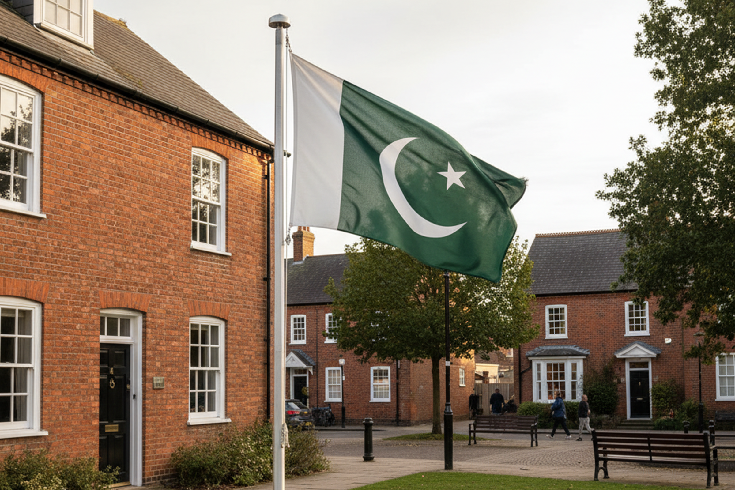 From family homes in Birmingham and Bradford to Pakistani businesses on high streets and official pakistan embassy flags UK installations, you need flags that look right and last. We specialise in pakistani flag printing UK for Independence Day parades, mosque events, business storefronts, and diplomatic locations where presentation quality matters just as much as durability.