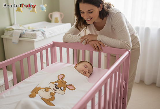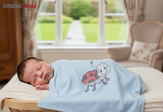 Our custom baby blankets are custom printed with the name of your choice, creating a bespoke and unique gift. Choose from a variety of cloth colours and select the print area for personalisation. You can also opt for professional design help if needed, ensuring that your personalised newborn blanket is exactly as you envision.