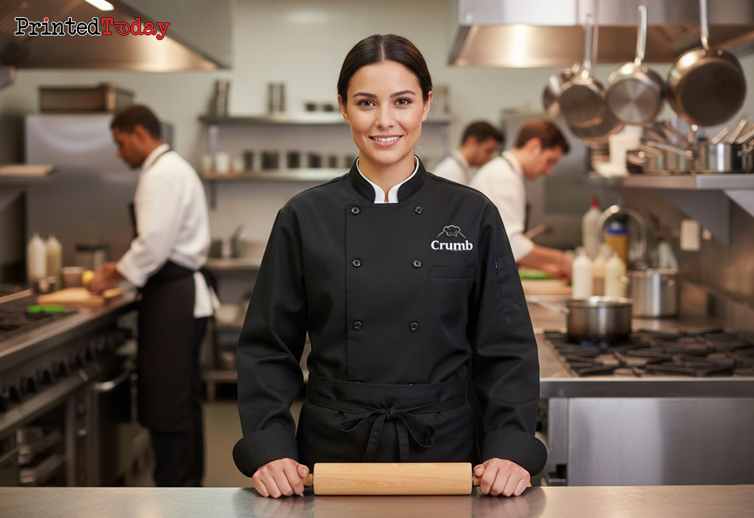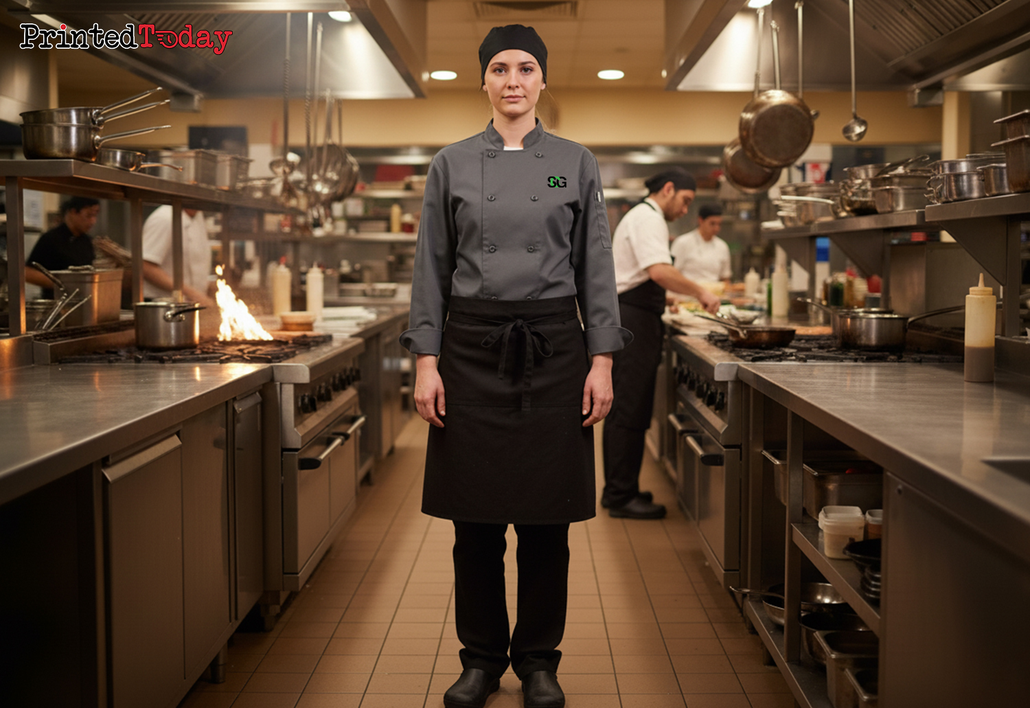 Our personalised chef uniform is custom printed with no minimum order requirement and available for same/next day delivery.