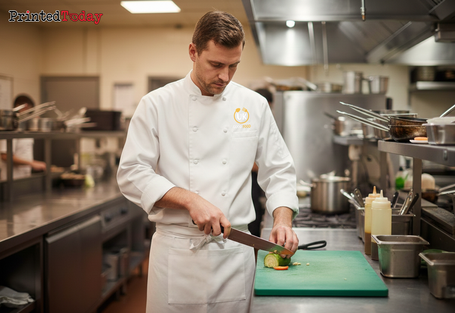 Printed Today’s Chef Long Sleeve Jacket is a high-quality, custom printed, personalised chef whites that is suitable for both domestic wash at 60c and industrial laundering at 85c. The unisex sizing and a wide range of sizes make it comfortable for chefs of all sizes. With long-life resin buttons and a mandarin collar, this personalised chef outfit is both stylish and durable, providing chefs with a professional and polished look. This bespoke chef coat is available for same/next day delivery and comes with optional design help, allowing you to create a truly unique and customised chef uniform. Don’t miss out on the opportunity to own a personalised chef jacket that suits your individual style and requirements. Order your Personalised Chef Long Sleeve Jacket today.