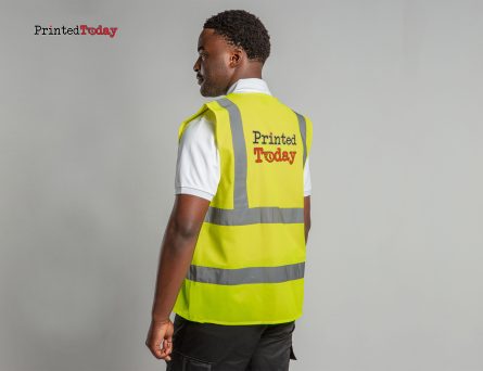 Printed Today is the go-to brand for high-quality, custom printed workwear. With no minimum order and same/next day delivery options, we make it easy for you to get the personalised safety vests you need, exactly when you need them. Take advantage of our optional design help to ensure that your custom safety vests with logo are perfect for your team. The customer journey is simple and straightforward, allowing you to select delivery timescales, cloth colours, quantities, and print areas. You can even upload your own design or choose our ‘Professional Design’ option for assistance.