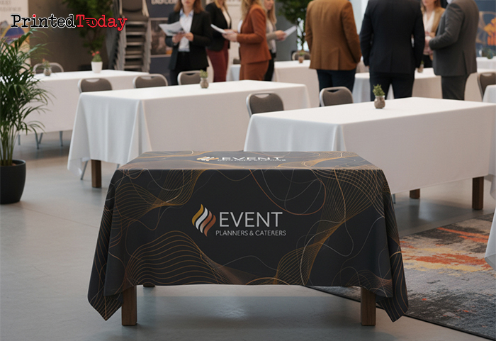 - Trade Shows: Enhance booths with appealing personalised event table covers.