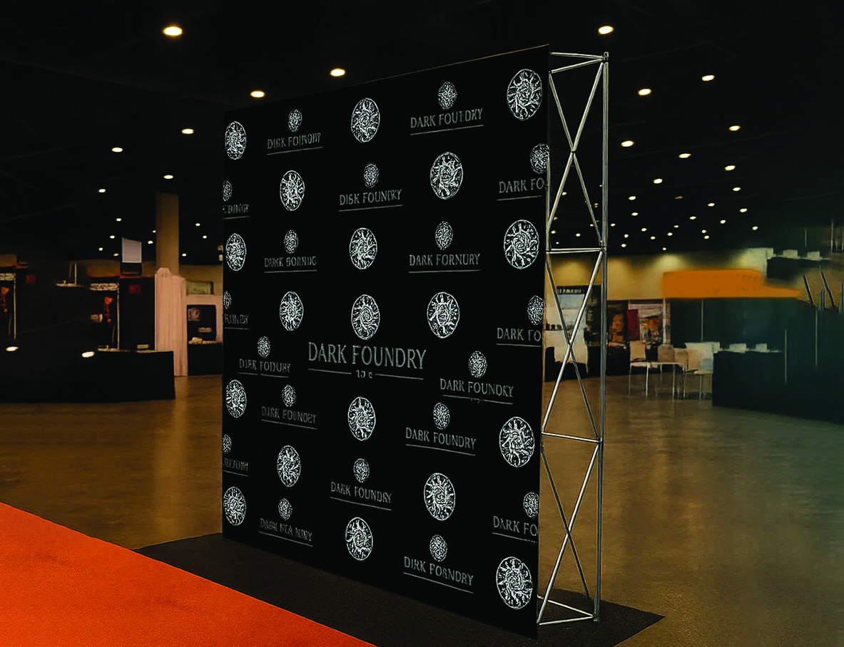 Fabric displays use premium 220gsm stretch fabric graphics printed via dye-sublimation that attach via reliable Velcro fastening. This system allows quick graphic changes between events and provides excellent print receptivity for vibrant, fade-resistant graphics.