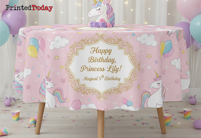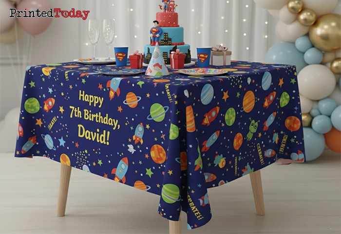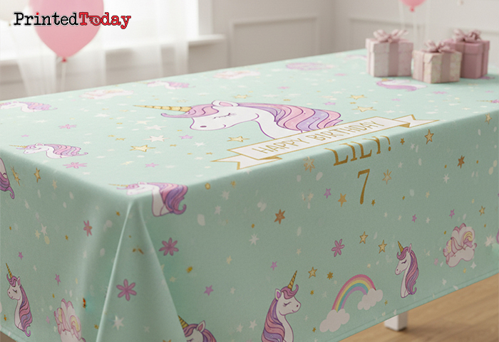- Custom events – create custom birthday table covers to match your theme perfectly.