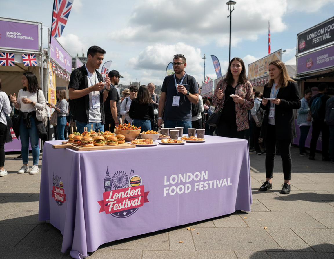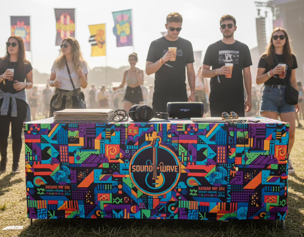 - Festivals – Keep the vibe vibrant and cohesive with printed local event table throws that withstand outdoor conditions.