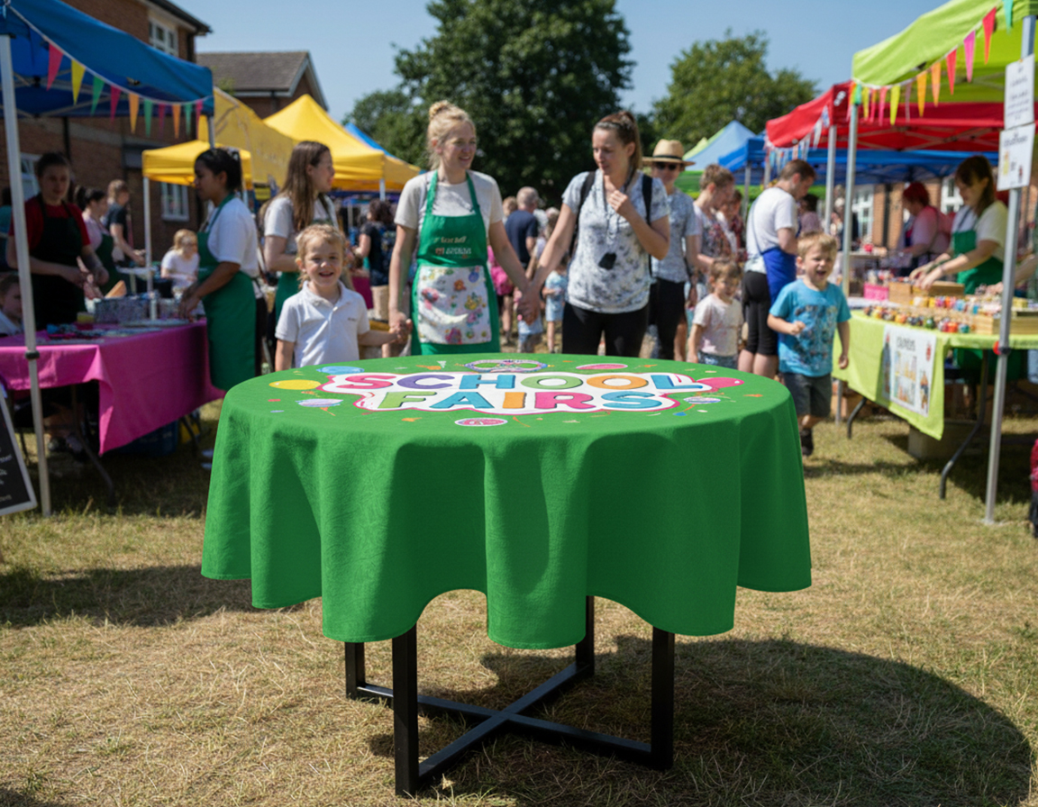 - School Fairs – Personalised outdoor tablecloths create a professional look while withstanding spills and tough environments.