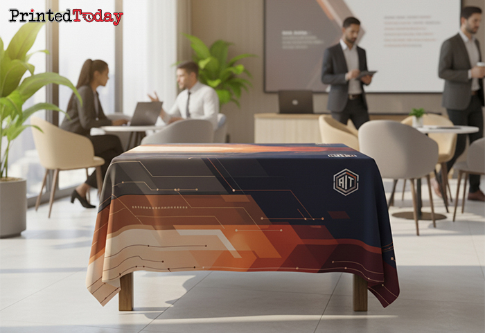 Printed Today’s Personalised Printed Corporate Office Tablecloths & Covers combine premium quality, efficient service, and comprehensive support to enhance your corporate presentations. Whether you need covers for a product launch, an exhibition, or a corporate keynote, our products ensure a professional finish tailored to your timeline and budget.