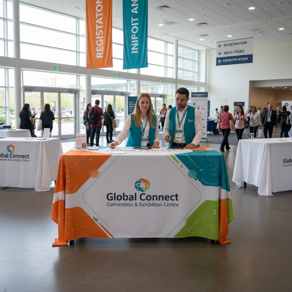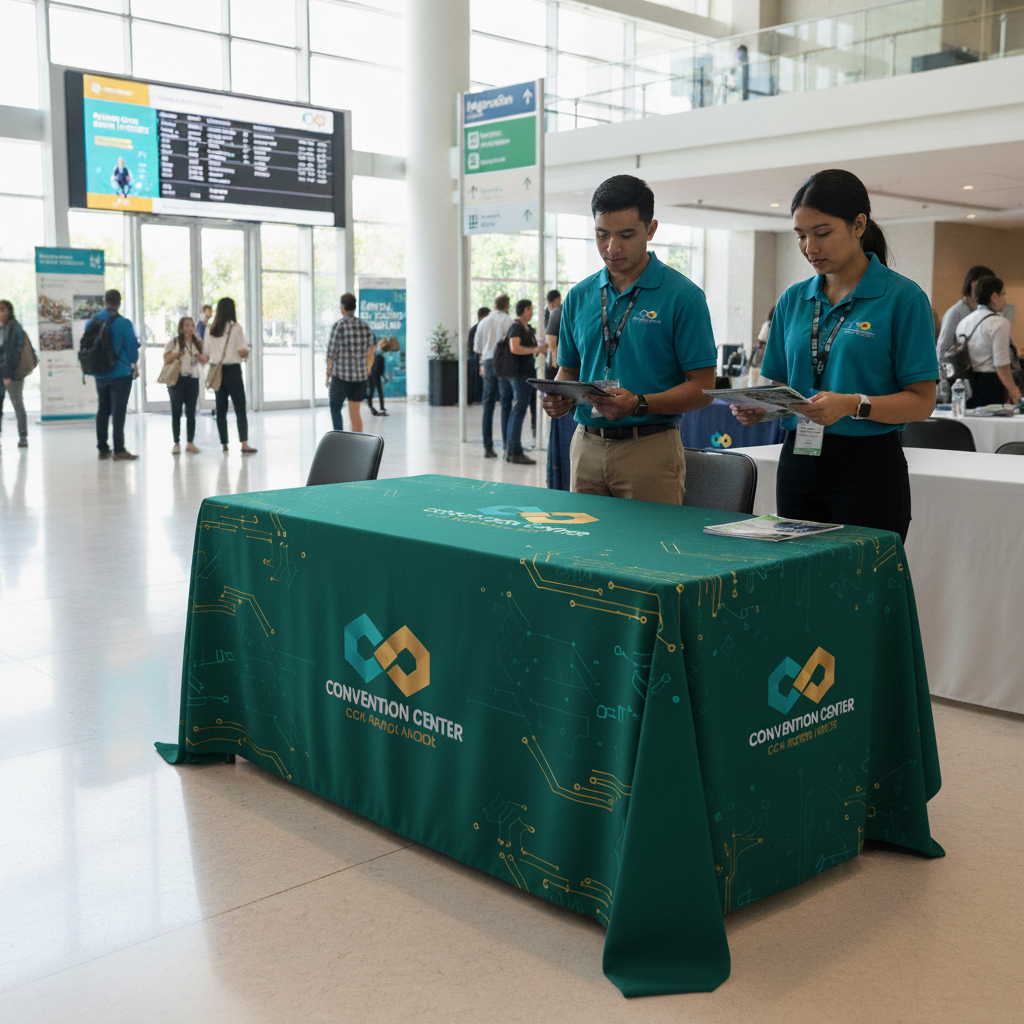 - Events: Branded event tablecloths ensure a consistent and professional look at conferences and exhibitions.