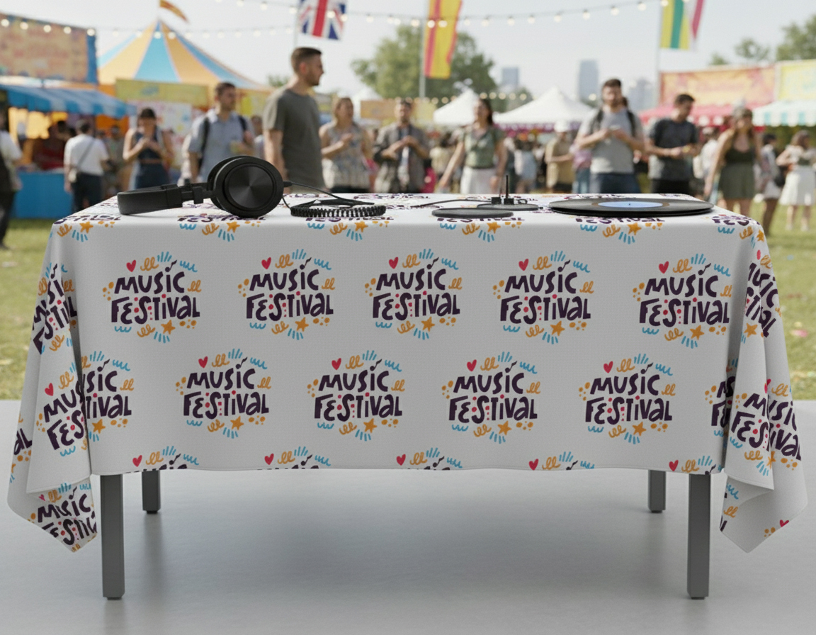 - Outdoor promotions and festivals – our outdoor table cover printing delivers robust performance for open-air campaigns.