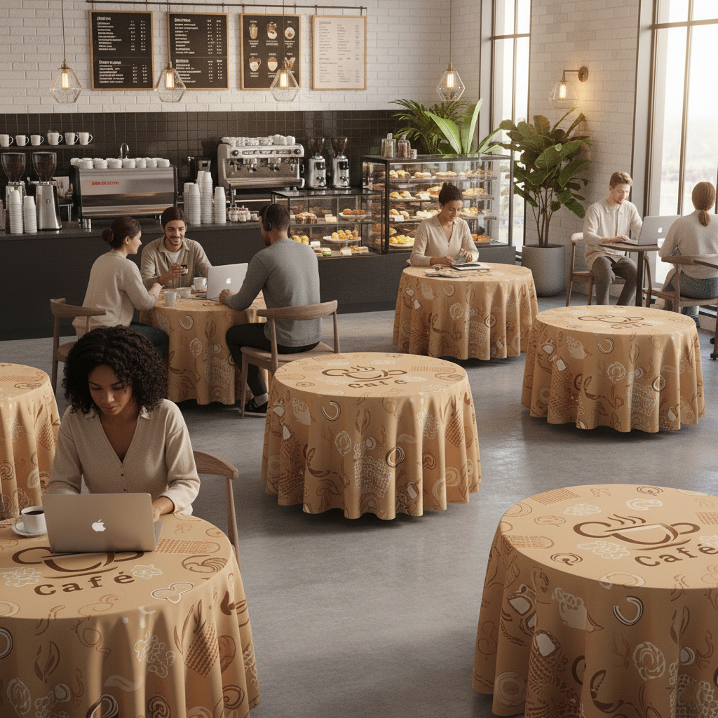 - Retail and food service – a washable marketing tablecloth keeps counters tidy, on-brand and easy to maintain.