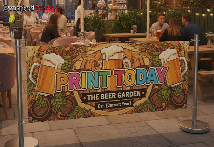 Define outdoor seating and raise street presence with Pub Beer Garden Café Barrier Banners from Printed Today. We produce Pub Beer Garden cafe banners in 510 gsm PVC vinyl, 350 gsm PVC mesh and premium 195 gsm poly-fabric. Choose printed Pub Beer Garden cafe barrier banners for clear branding across long runs, or branded Pub Beer Garden cafe barrier banners to match your tap boards, menu signage and parasols. Our Pub Beer Garden cafe barrier system banners are supplied as graphics only and finished with pole pockets or eyelets so they fit neatly to your existing rails.