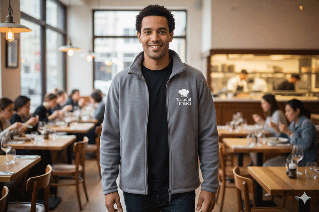 Restaurant Printing plays a crucial role in creating branded fleece jackets that stand out. The personalised work fleece with logo helps reinforce your business identity while offering practical benefits. For staff working in cold storage or during events, these personalised mens work fleece jackets provide necessary warmth without compromising on style.