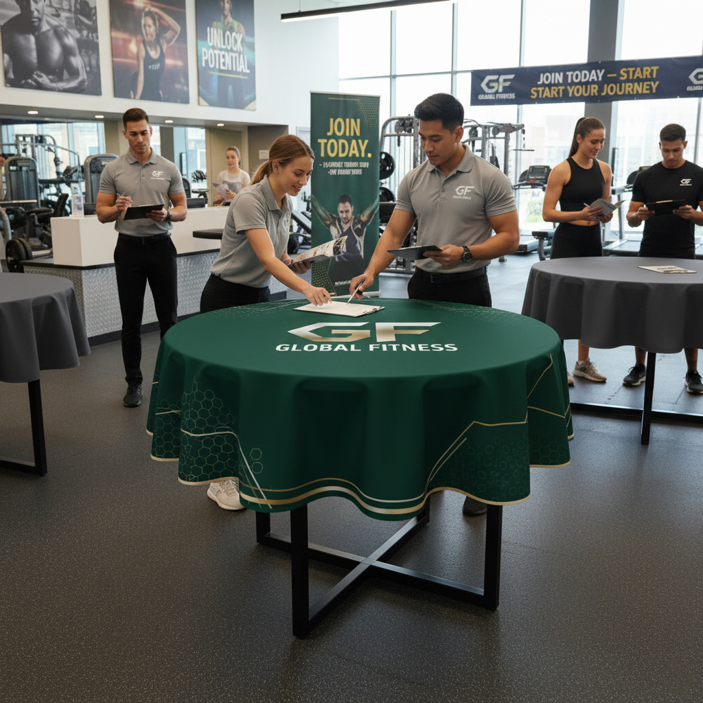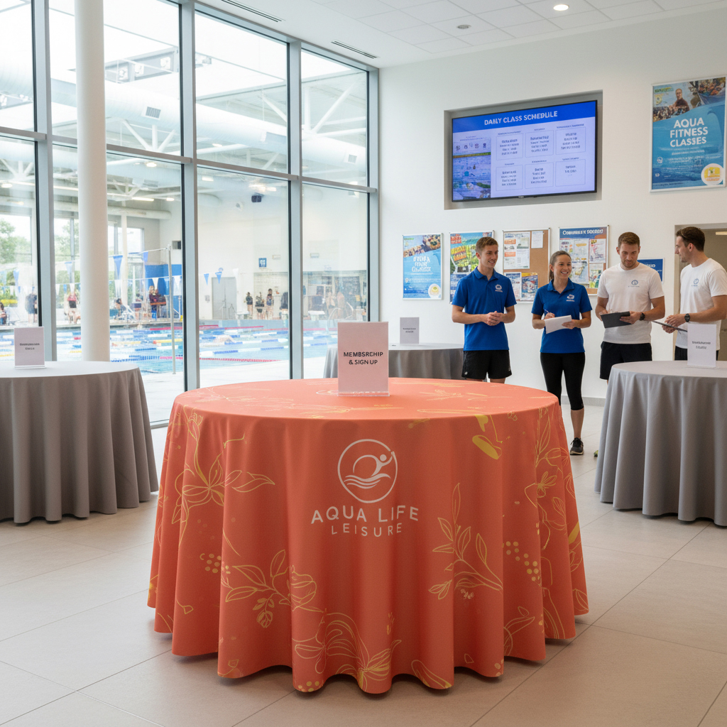 - Promotions – outdoor events benefit from our custom round table covers, available with weather-resistant options.
