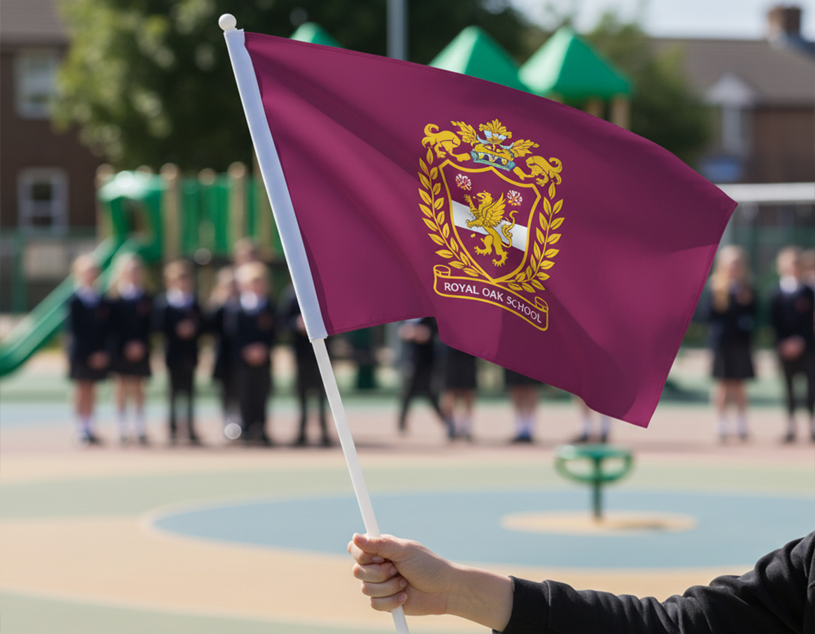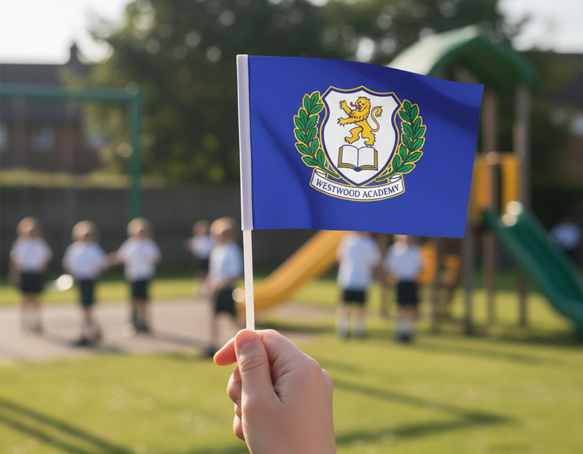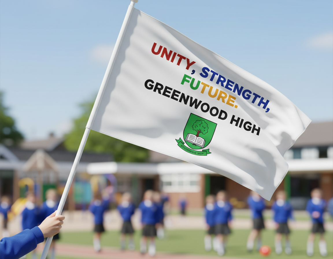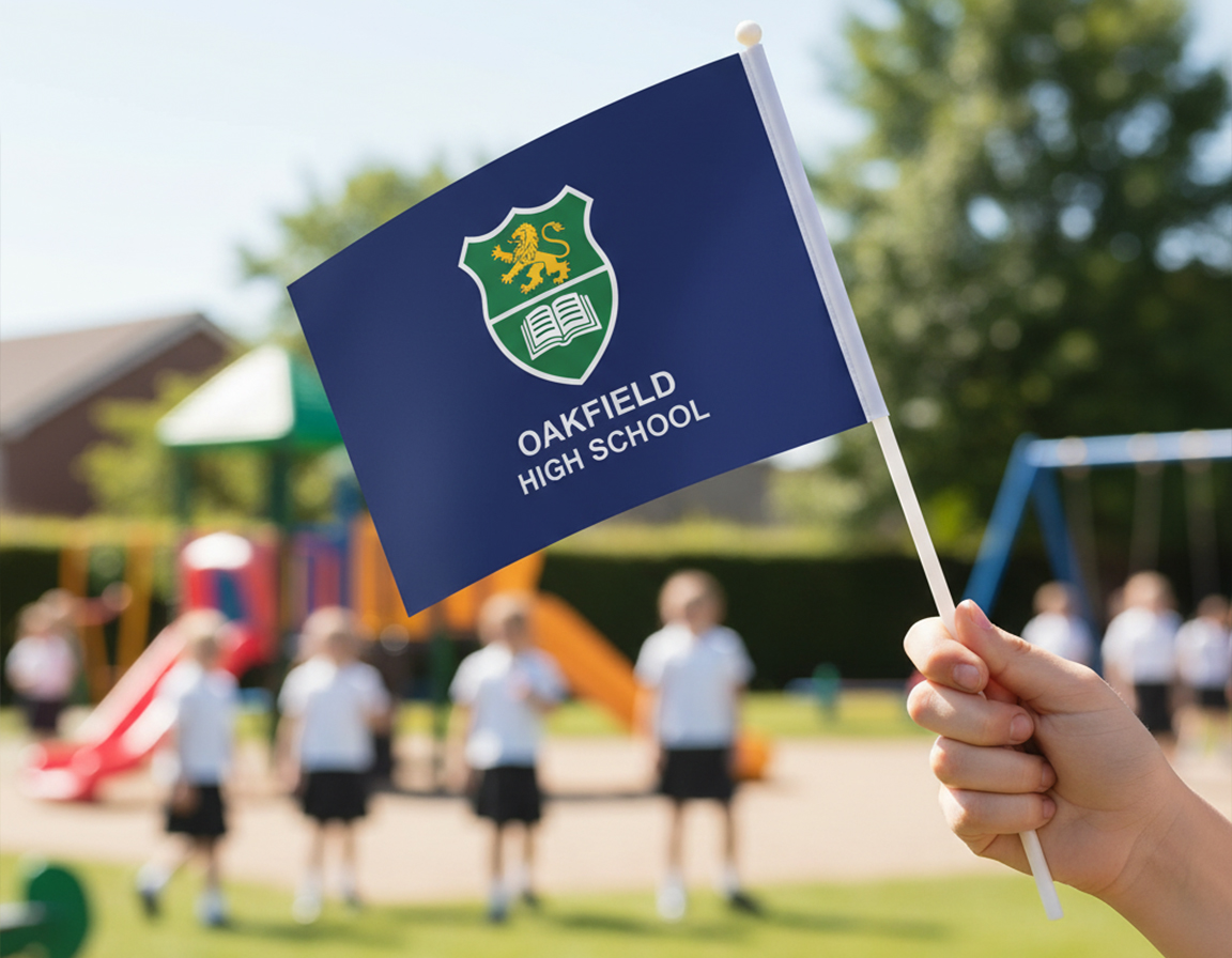 Printed Today supplies outdoor school hand waving flags across the UK to academies, primary schools, secondary schools, colleges, multi-academy trusts, and PTA organisations. A Manchester academy distributing 1,200 personalised school flags for sports day documented a 48% rise in student participation and stronger house spirit, driven by the visual unity flags created across the field. Meanwhile, a London primary school used waterproof school hand waving flags during Anti-Bullying Week assemblies—the flags helped reinforce the campaign’s message visually, resulting in significantly higher student engagement and discussion retention.