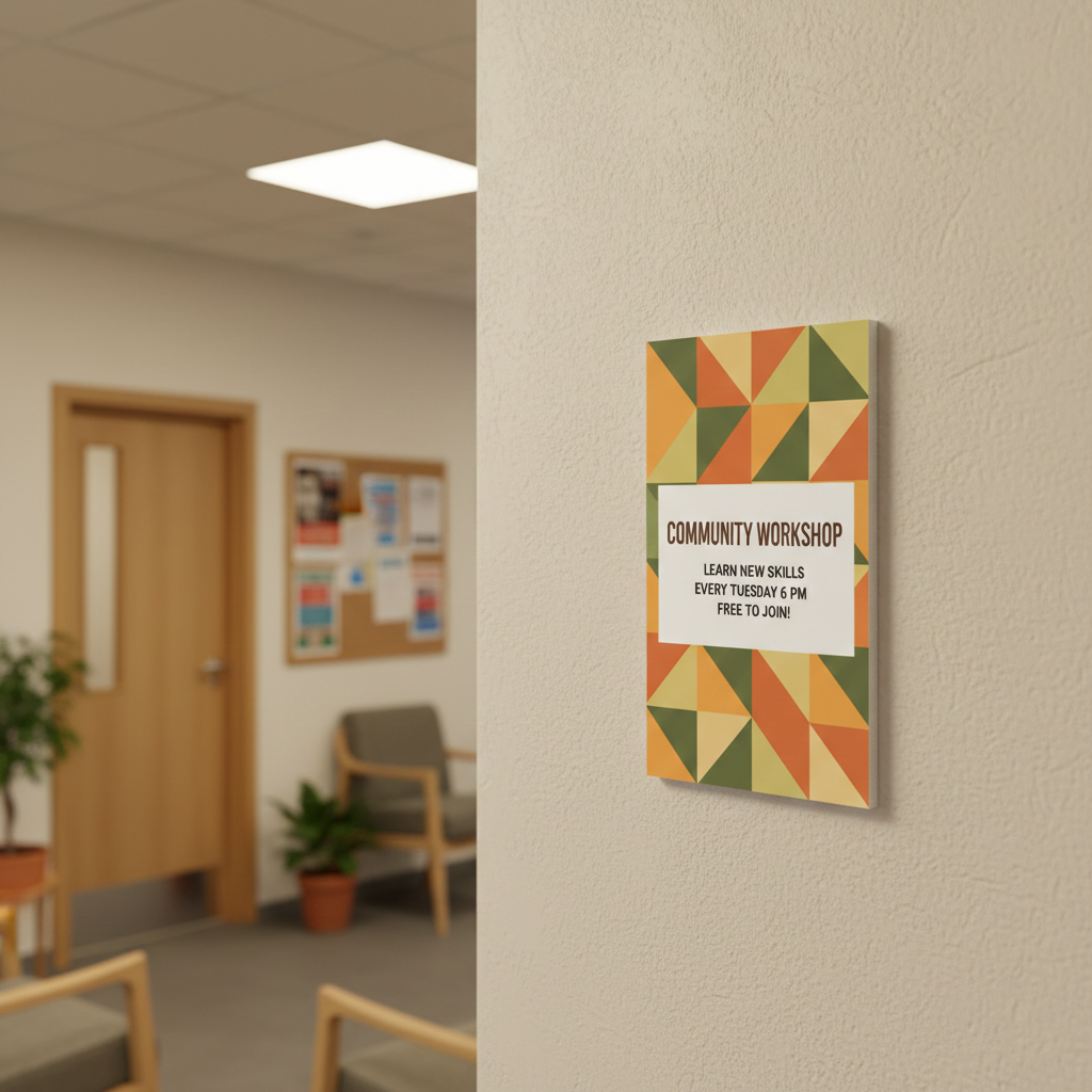 Format selection depends on information complexity and viewing context. Brief announcements suit A4 or A3 scales for close reading. Detailed instructions require A2 or A1 accommodating step-by-step procedures with supporting imagery. Wayfinding information demands sizing ensuring legibility from decision-point distances where directional choices occur.